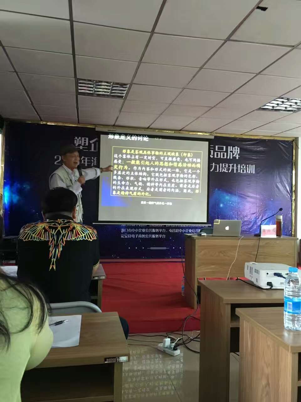 海南大學形象研究室主任徐國定教授在現場做專題培訓,徐國定從企業品牌管理能力、企業品牌形象塑造等方面進行了深入的講解,為中小企業品牌管理做專業的指導。現場,各企業還就企業品牌建設具體內容進行了交流和討論。