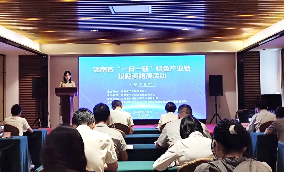 7月16日上午,由海南省工業和信息化廳主辦,海南省中小企業發展服務中心承辦,三亞市科學技術和工業信息化局協辦、海南股權交易中心提供支持的海南省“一月一鏈”投融資路演活動在三亞順利開展。活動旨在為構建我省中小企業融資促進良好生態,精準服務企業融資需求,幫助企業直接融資,助力中小企業專精特新發展。